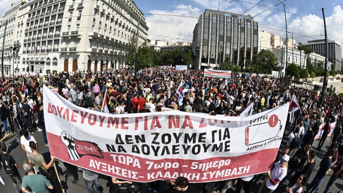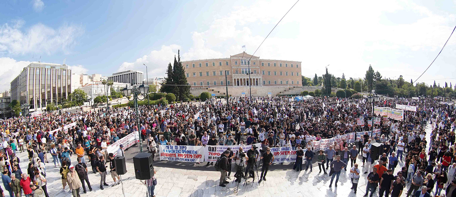 في بداية تشرين اﻷول\أكتوبر 2025 بعثَ آلاف المضربين في جميع أنحاء اليونان برسالة إدانة مدوية لمشروع قانون الحكومة الجديد المناهض للعمال، والذي ينص على يوم عمل مدته 13 ساعة، وذلك من خلال مشاركتهم في التحرك اﻹضرابي العمالي الشامل ﻟِ 24 ساعة، وما صاحبها من تجمعات إضرابية ومسيرات جماهيرية زاخمة.