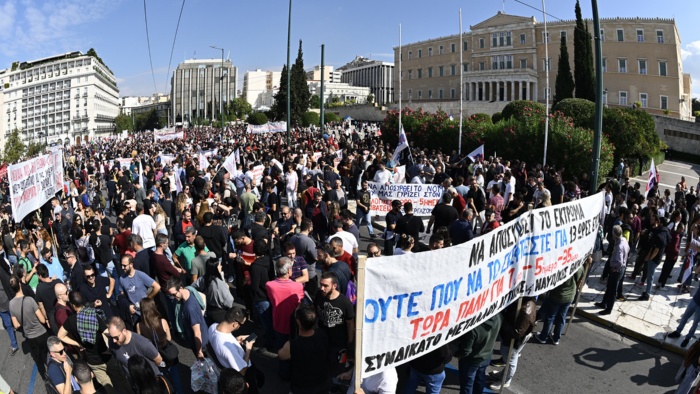 An der Streikkundgebung in Athen nahm der Generalsekretär des Zentralkomitees der KKE, Dimitris Koutsoumbas, teil, der wenig später vom Rednerpult des Parlaments aus, ebenso wie die anderen Abgeordneten der KKE, das volksfeindliche Gesetz scharf kritisierte.