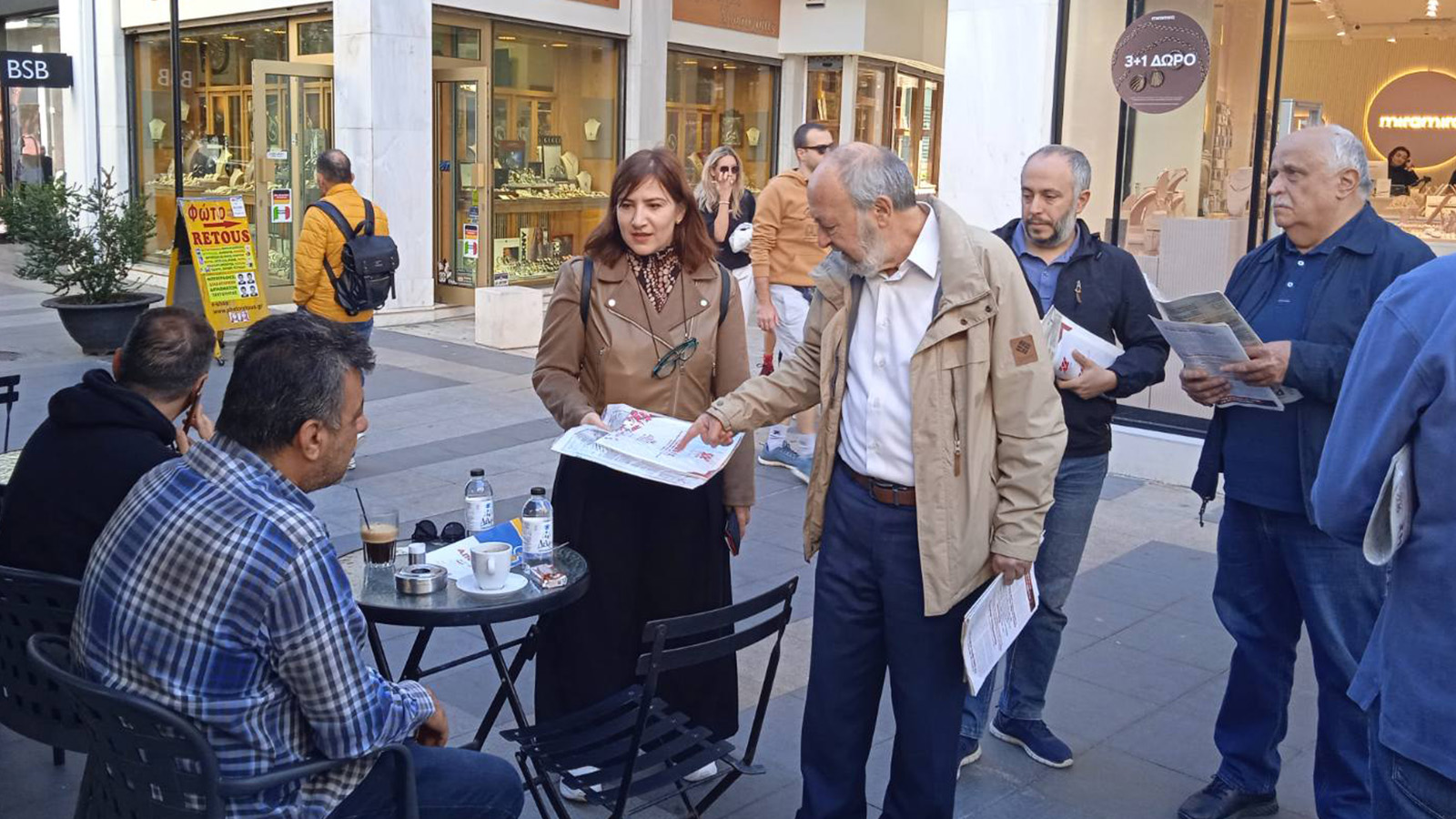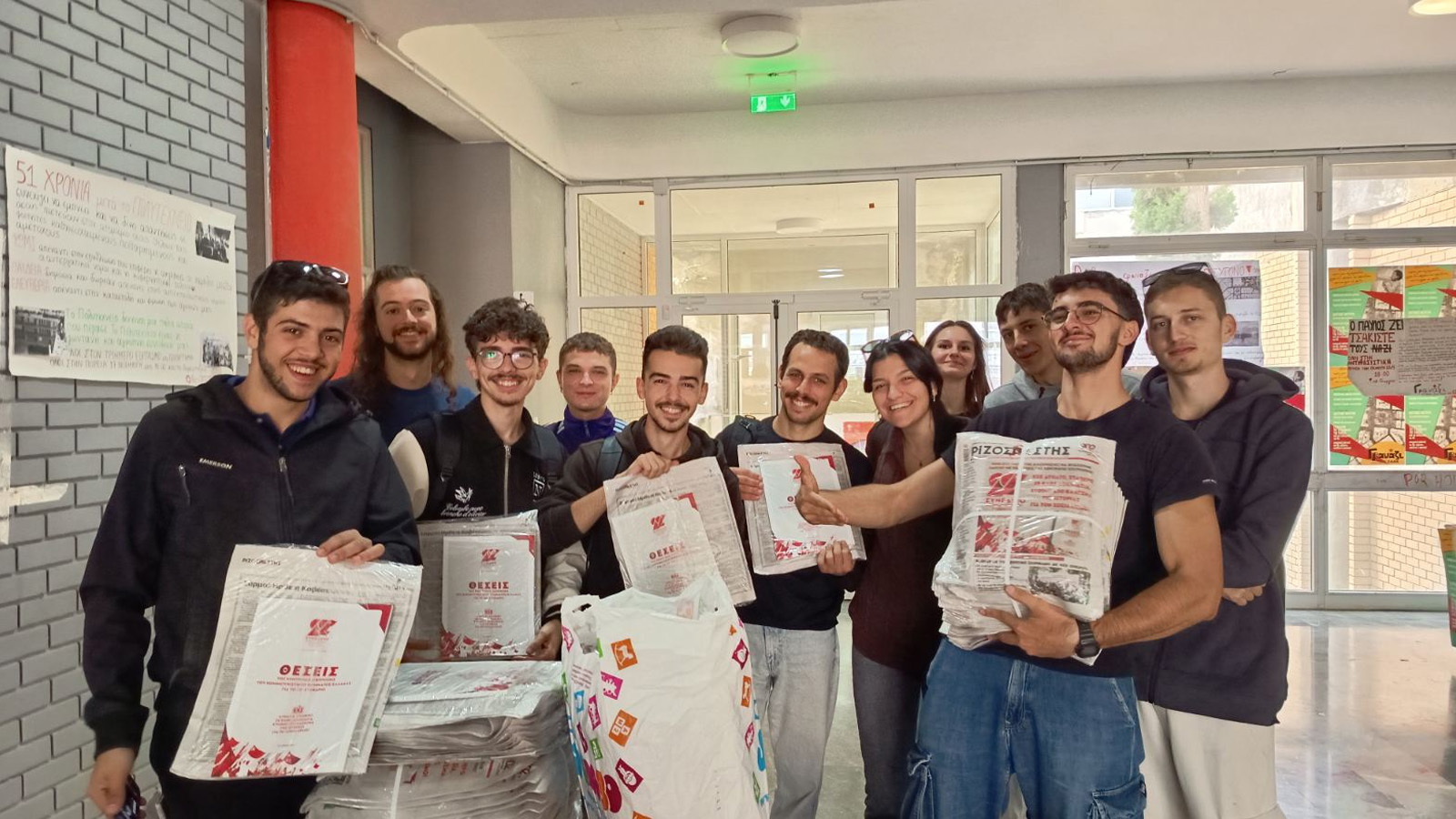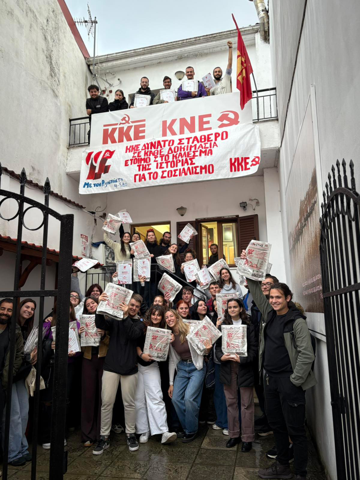 Безусловно, первым делом является распространение Тезисов, в котором участвуют члены и друзья КПГ и КМГ по всей Греции.